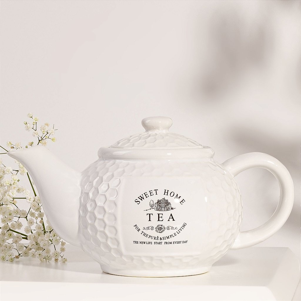 Este bule em cerâmica branco traz delicadeza e elegância ao servir.