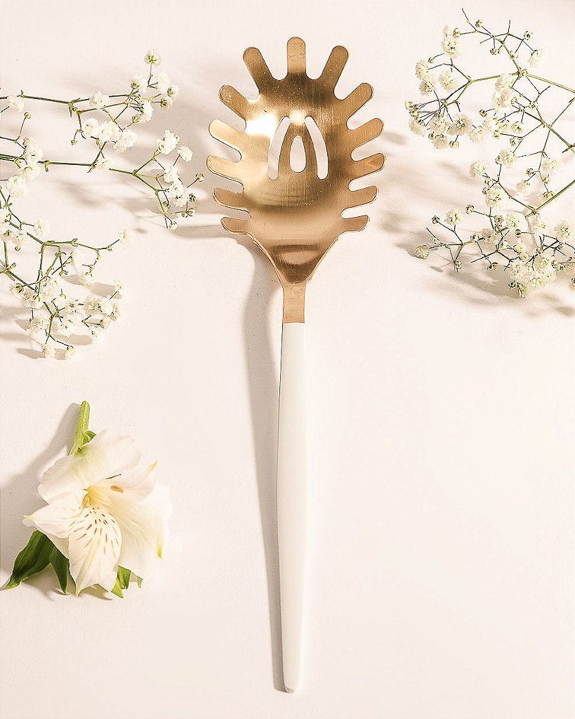 Pegador de massa dourado com cabo na cor branca